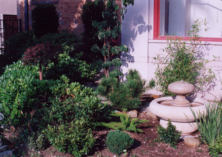 The design contains a water fountain, a Chinese lantern, and