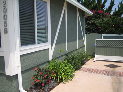 Redondo Beach - This landscape design in Redondo Beach was a complete makeover of a small back yard and the side of the house. Existing shrubs were removed and replaced with bold, flowering and fragrant plants.