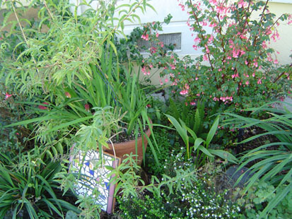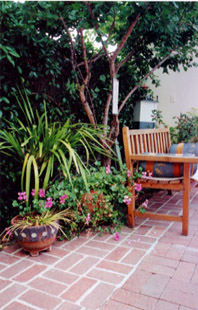 West Los Angeles - This landscape design in West Los Angeles has a lot of textures, colors and plants to attract butterflies and hummingbirds.