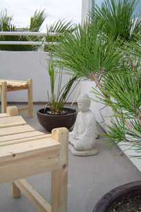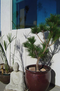 Santa Monica Patio - This rooftop landscape design in Santa Monica was created for a chiropractic office. The Zen garden is seen from the waiting area and creates a fabulous relaxing atmosphere.
